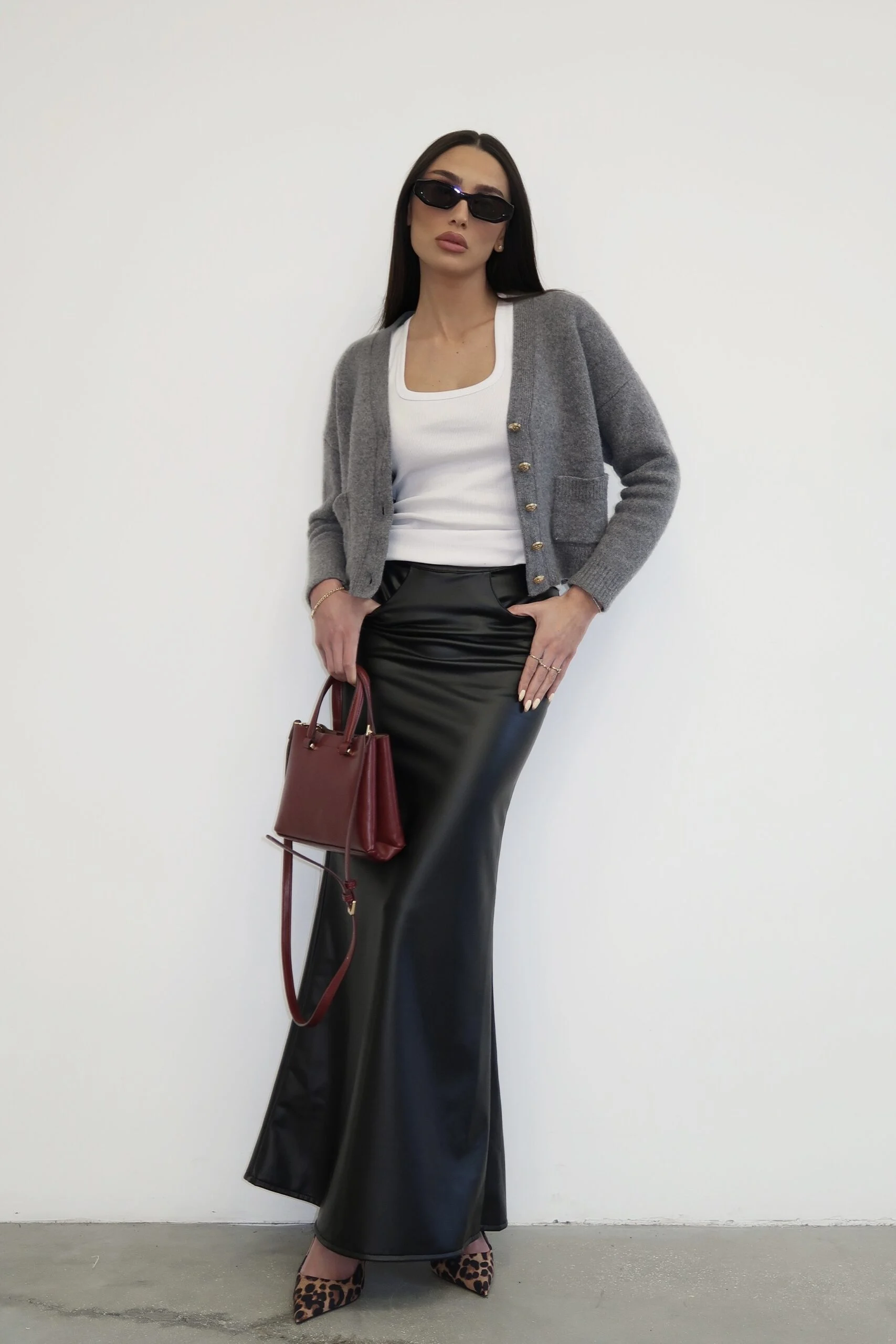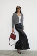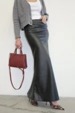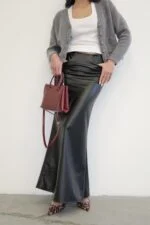חצאית באורך מקסי בגזרה צמודה עם שסע אחורי, רוכסן אחורי וכיסים קדמיים .