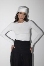 בגד גוף קלאסי עם גזרה נקייה ומדויקת בגימור חלק ומחמיא. עשוי בד נעים וגמיש שמצמיד בעדינות את הגוף, עם שרוולים ארוכים ומחשוף עגול. מידת הבגד על הדוגמנית 0.