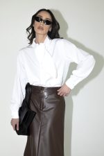 חולצה מכופתרת עם שרוולים ארוכים וקשירה בצווארון.