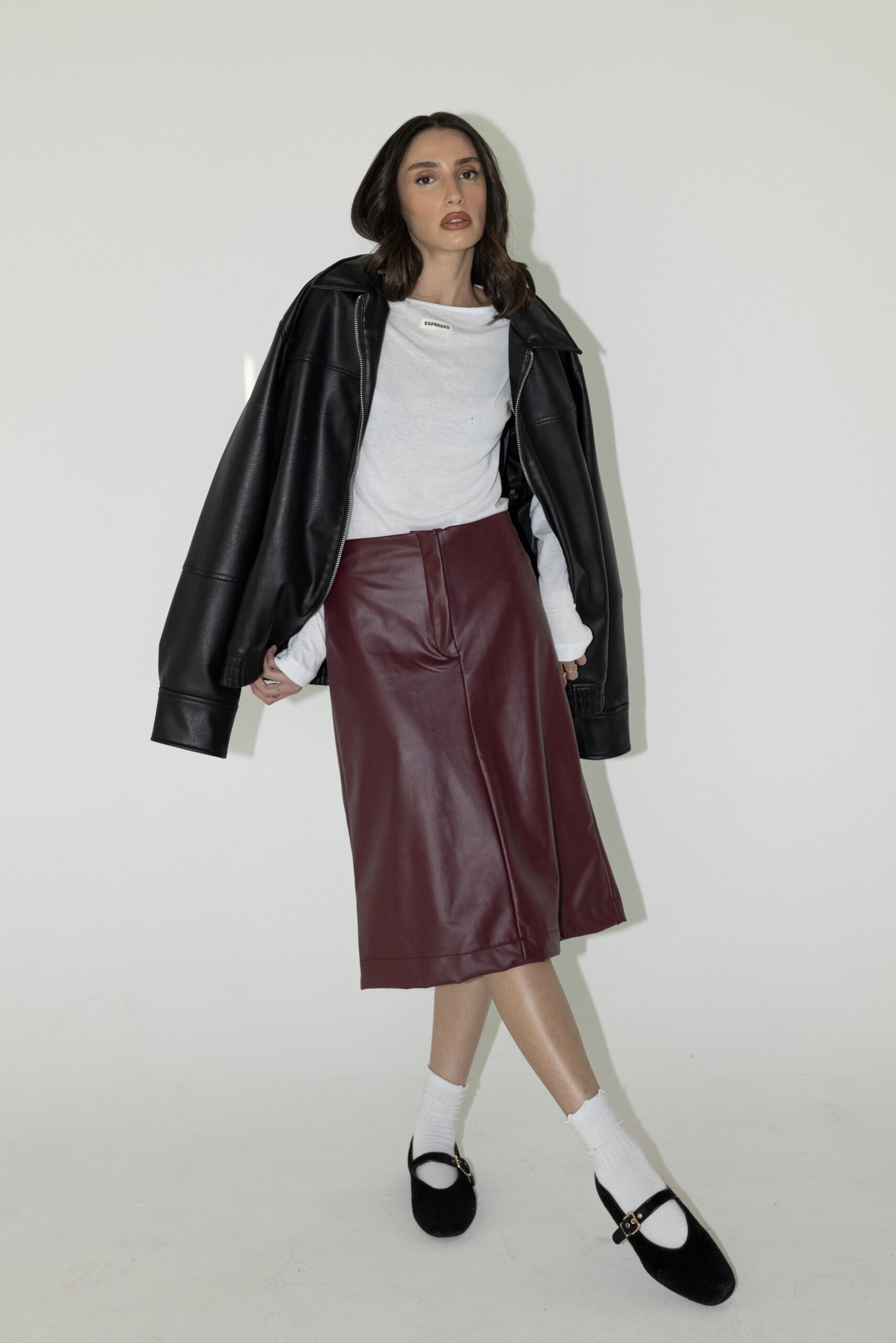 חצאית ברמודה עור בורדו