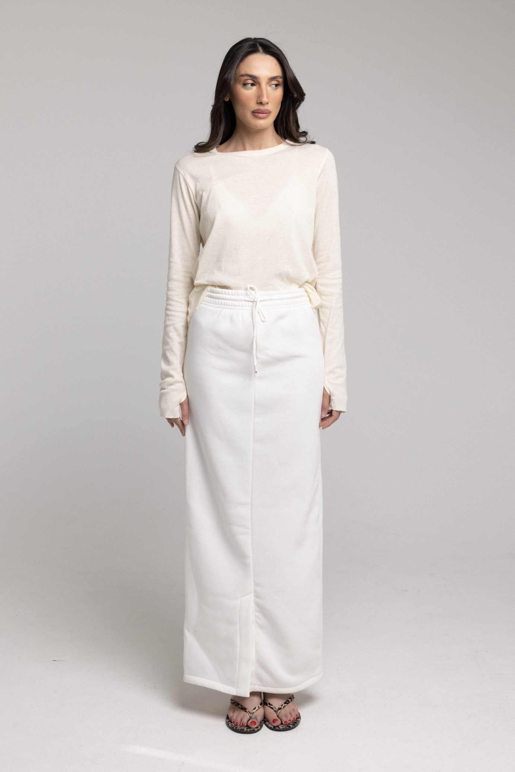 חצאית בייסיק מבד פוטר עם גומי למעלה.