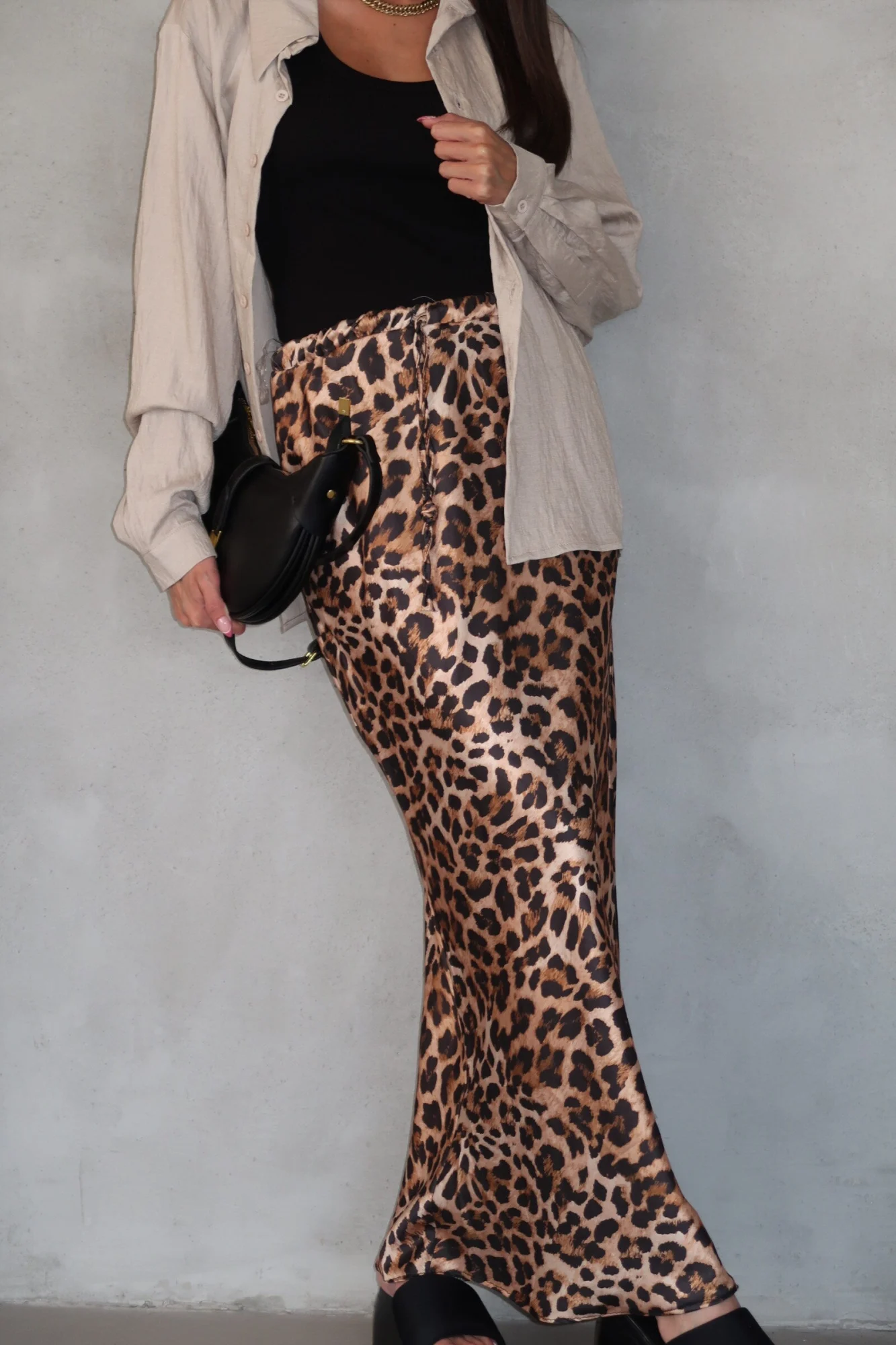 חצאית מושלמת מבד סאטן משי נשפכת על הגוף למראה קלאסי ומדהים וגומי במותן.
