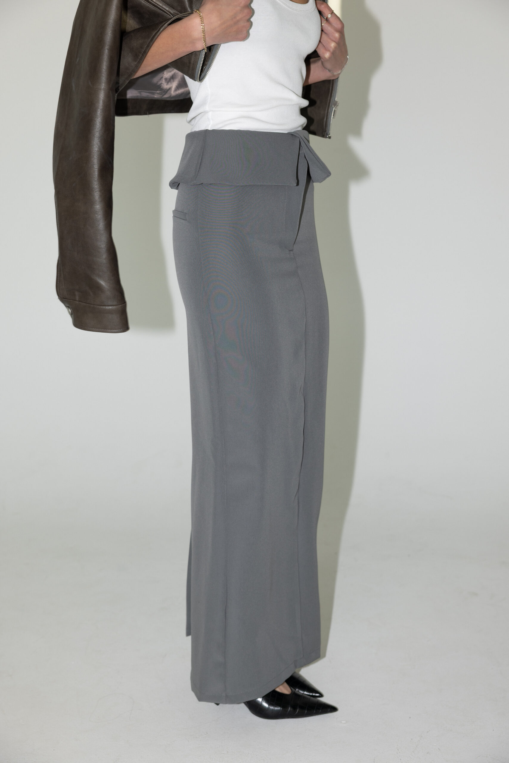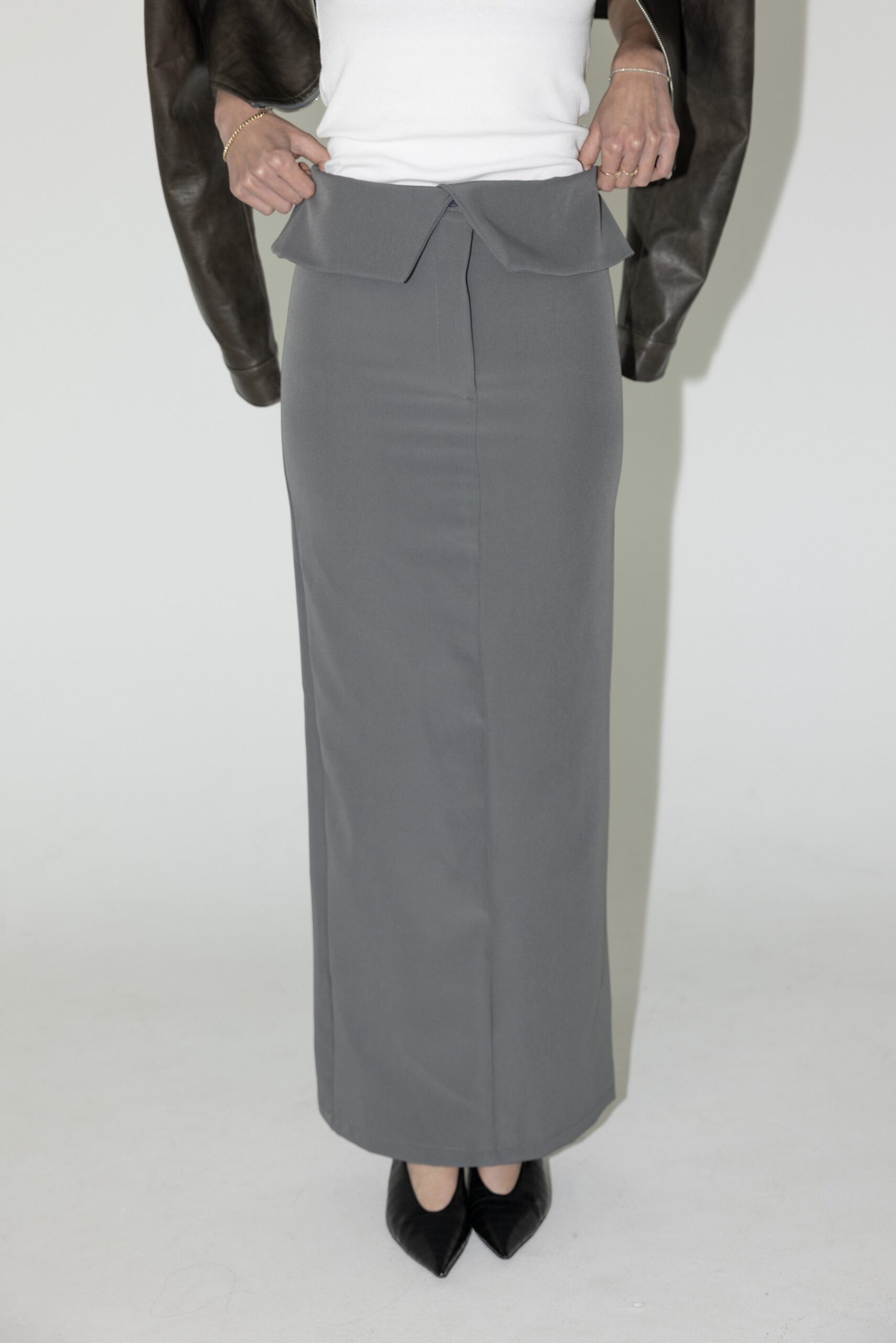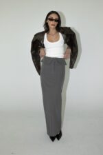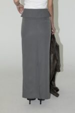 חצאית מחויטת בגזרה ישרה, עם רוכסן קדמי ושסע אחורי וקיפול בתחילת החצאית למראה אלגנטי ומושלם.