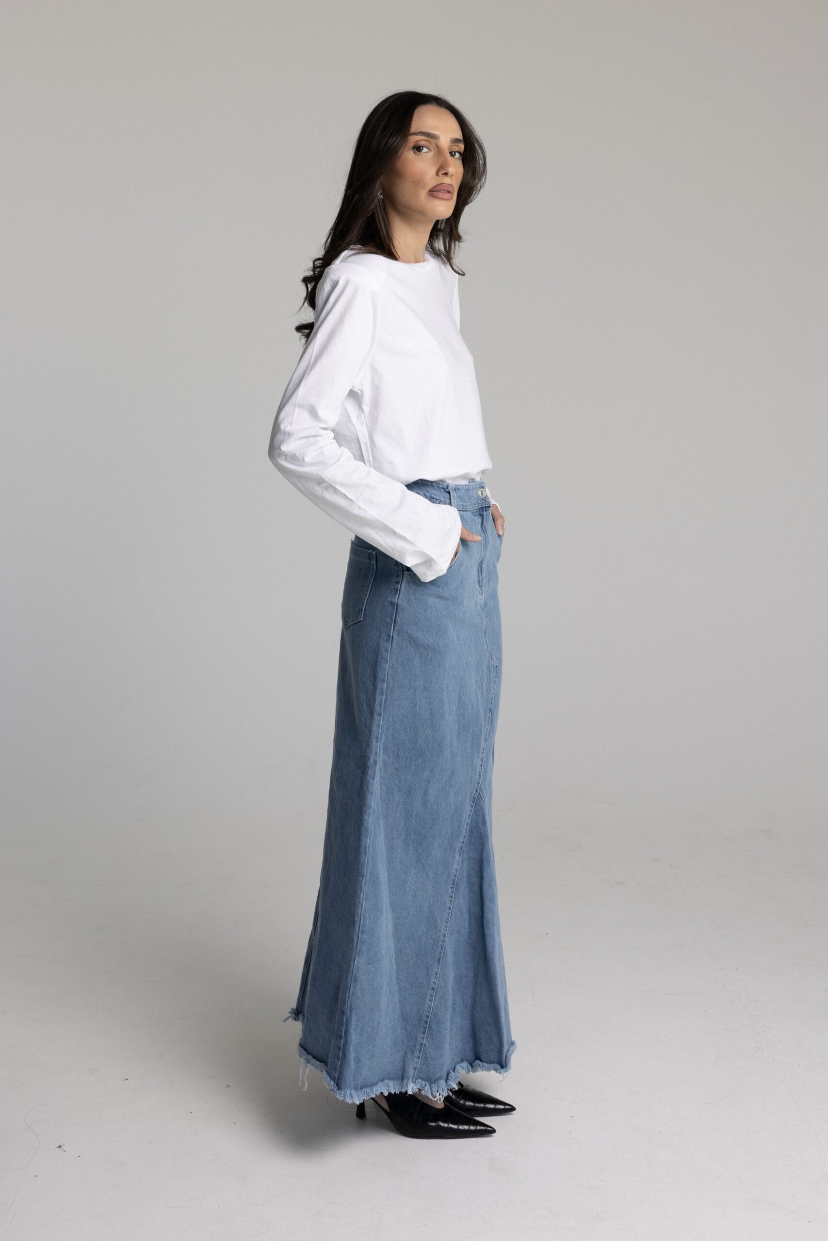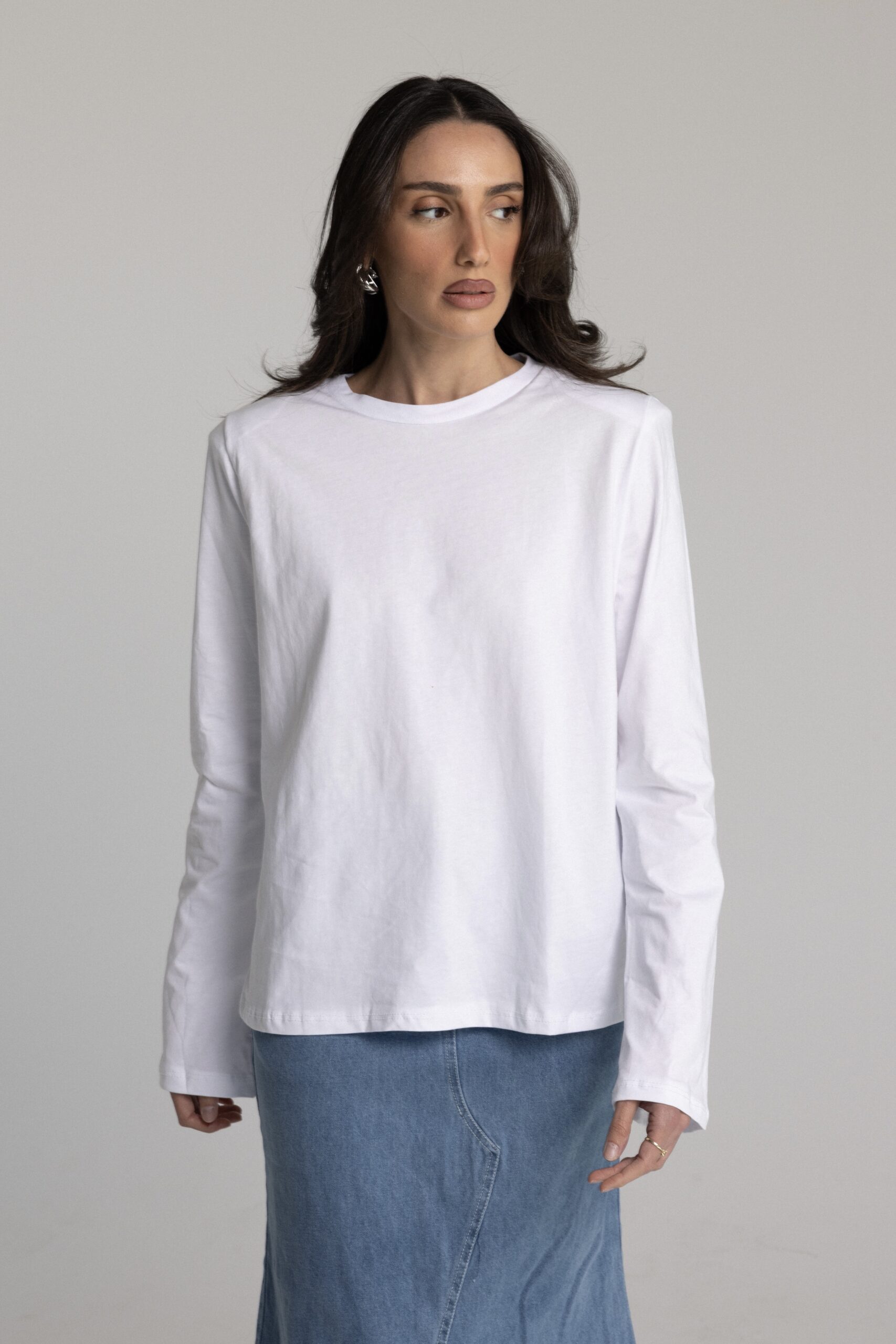 טי שרט ארוכה עם כריות בכתפיים בגזרת אובר סייז.