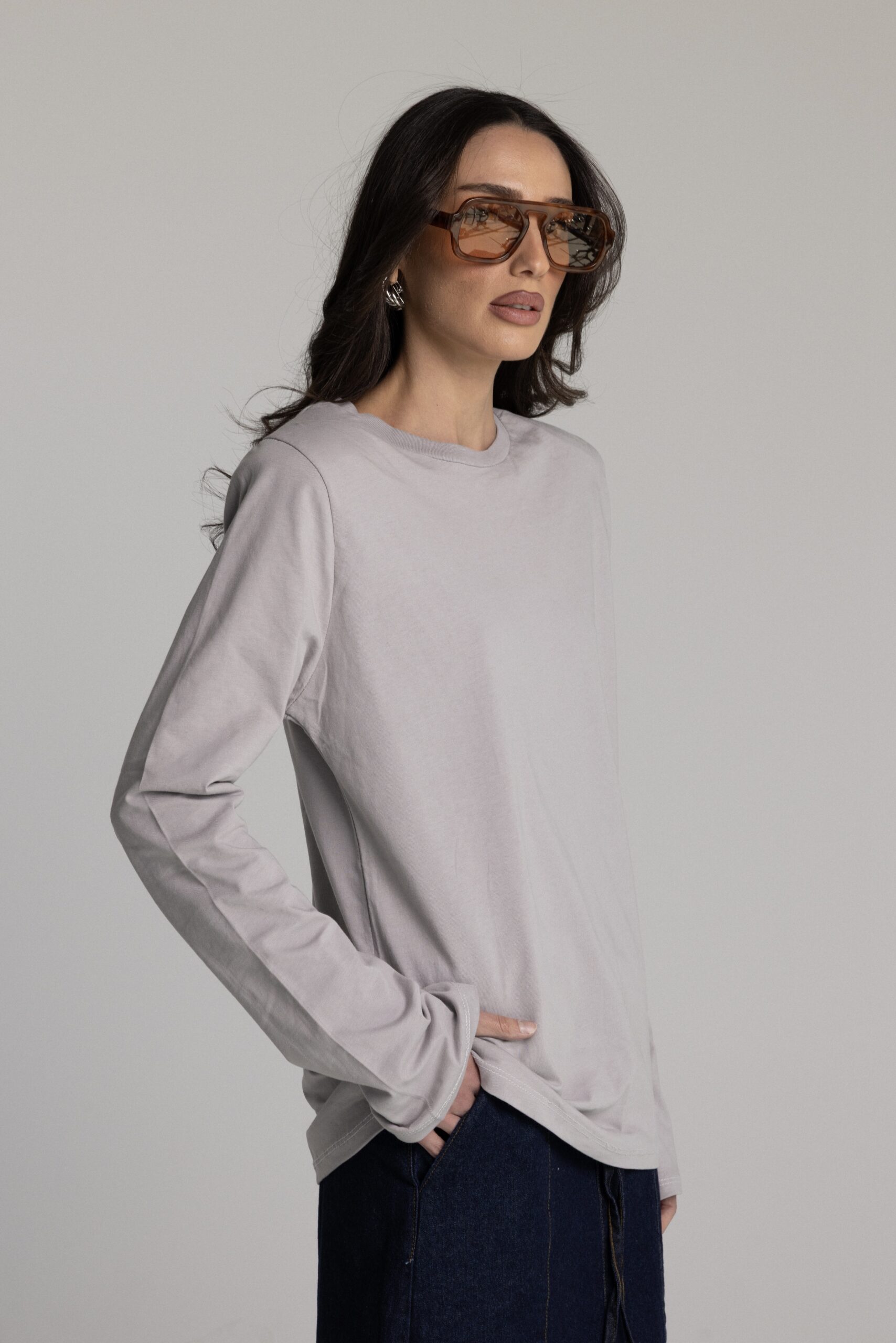 טי שרט ארוכה עם כריות בכתפיים בגזרת אובר סייז.