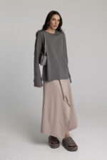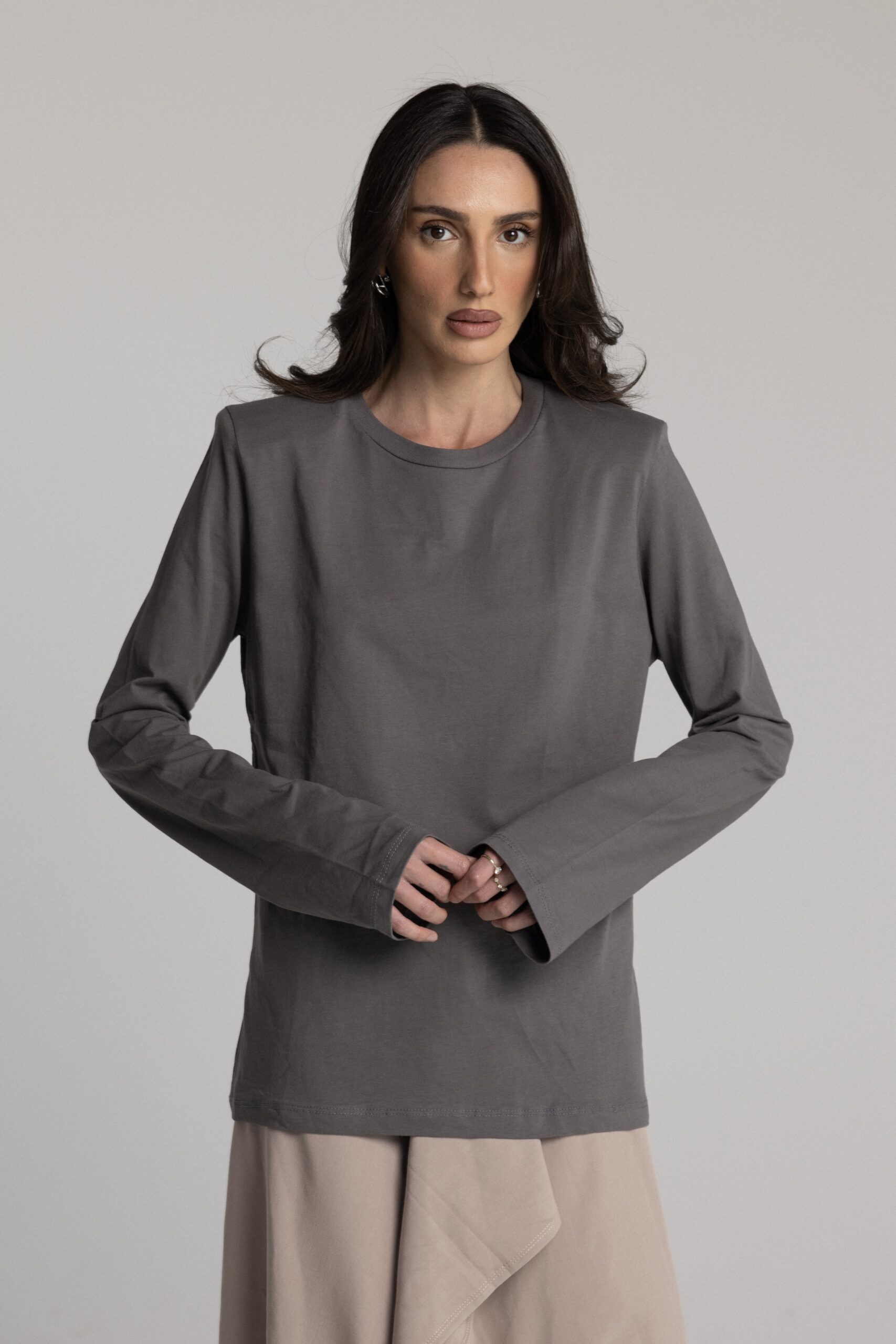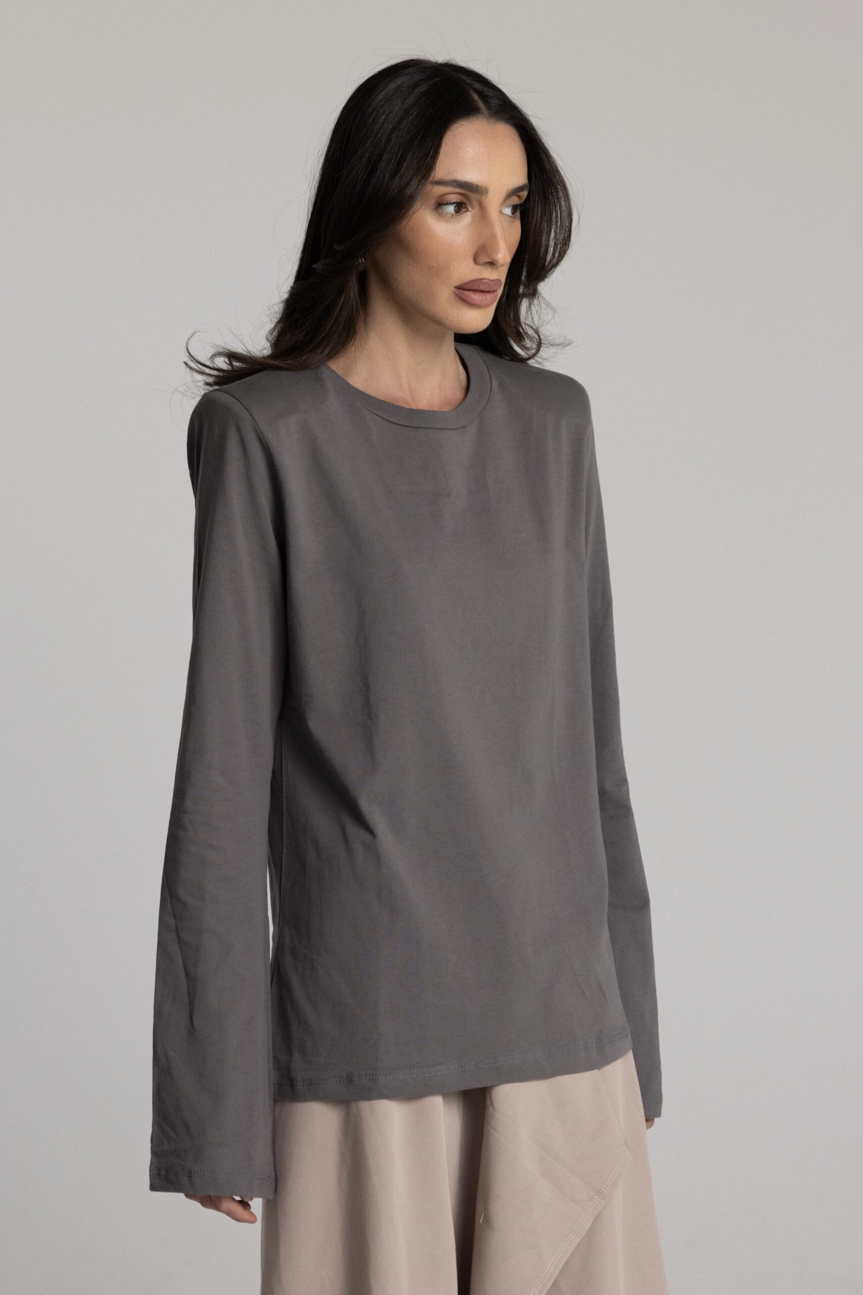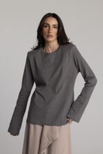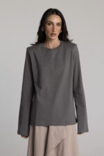 טי שרט ארוכה עם כריות בכתפיים בגזרת אובר סייז.