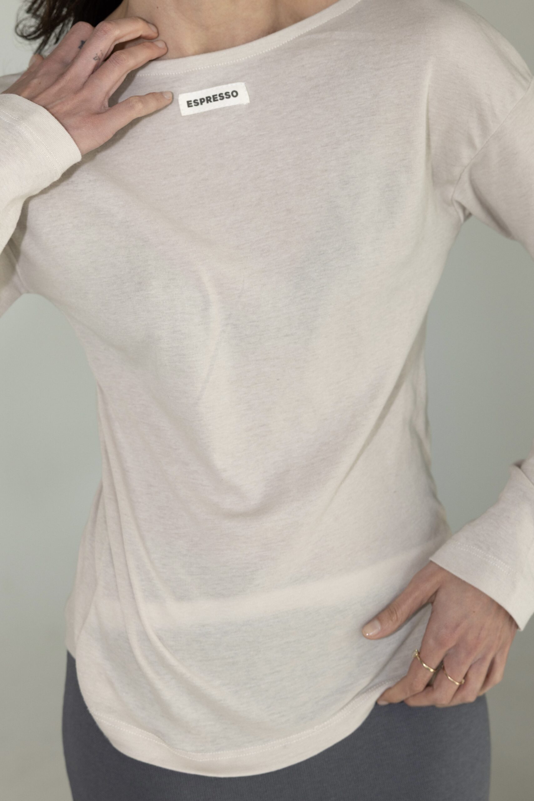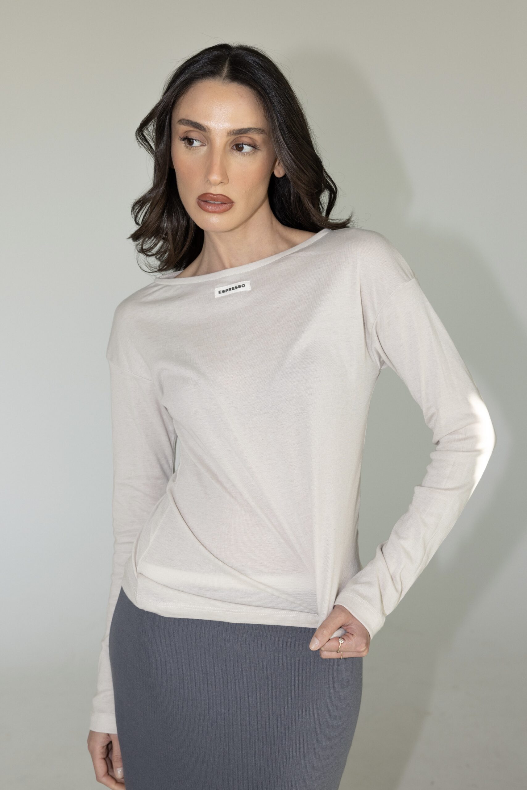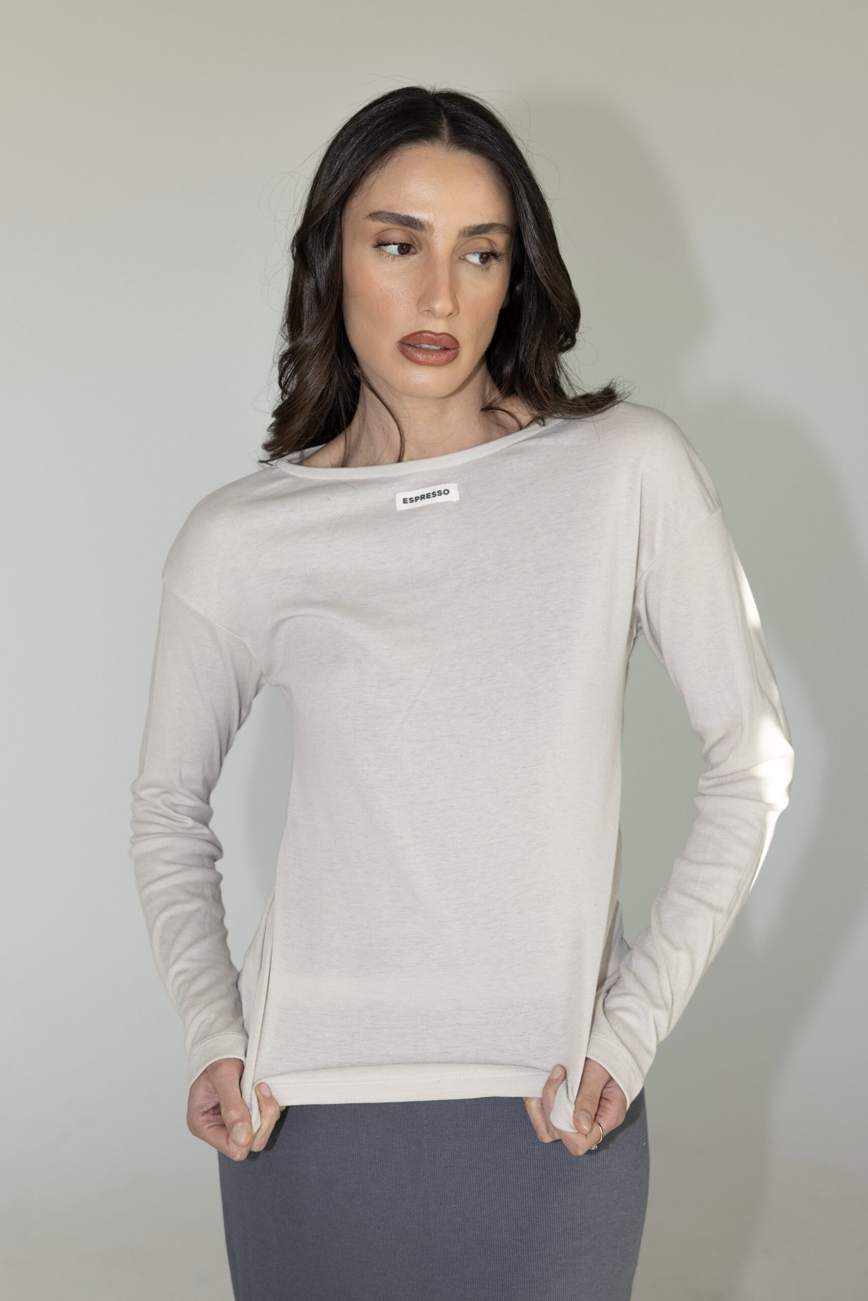 טי שרט מבד קליל דק ונעים עם שרוולים ארוכים.