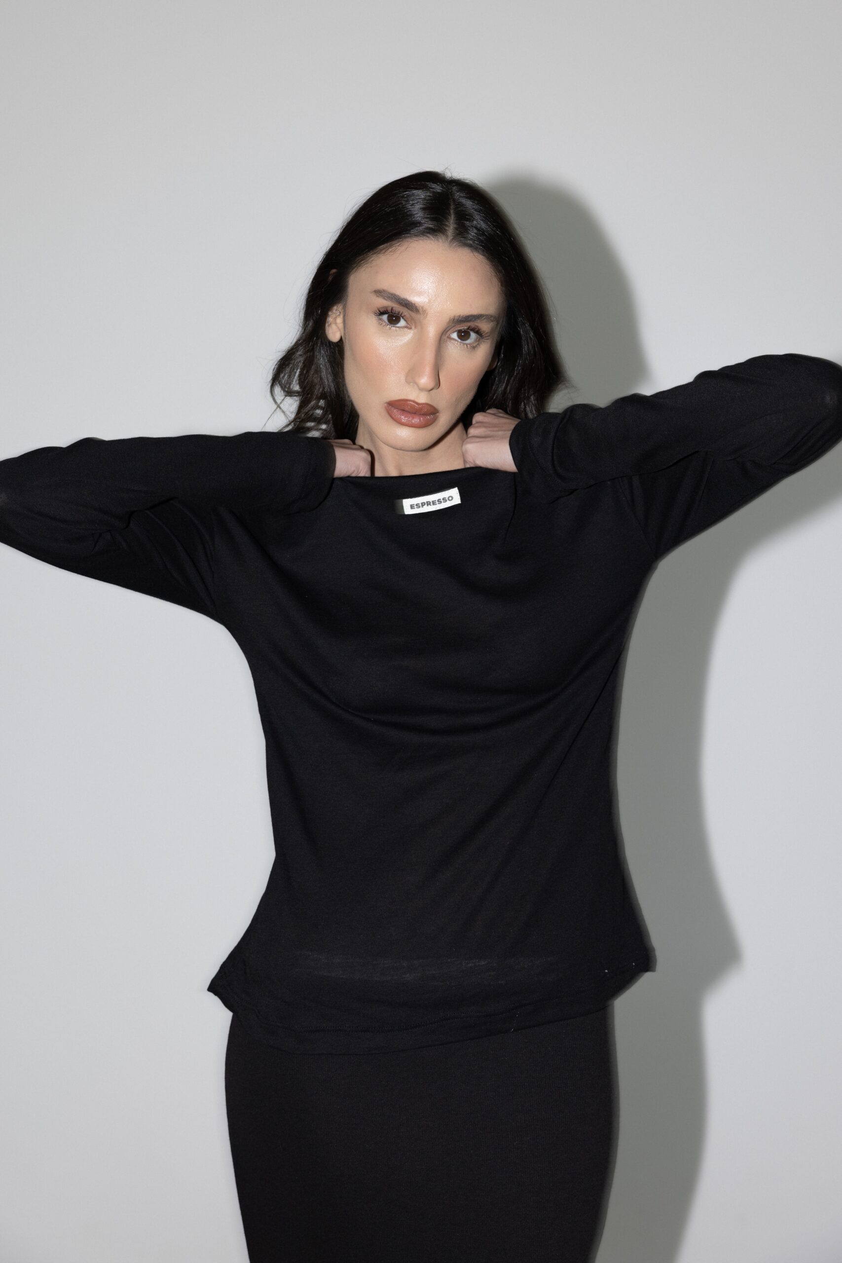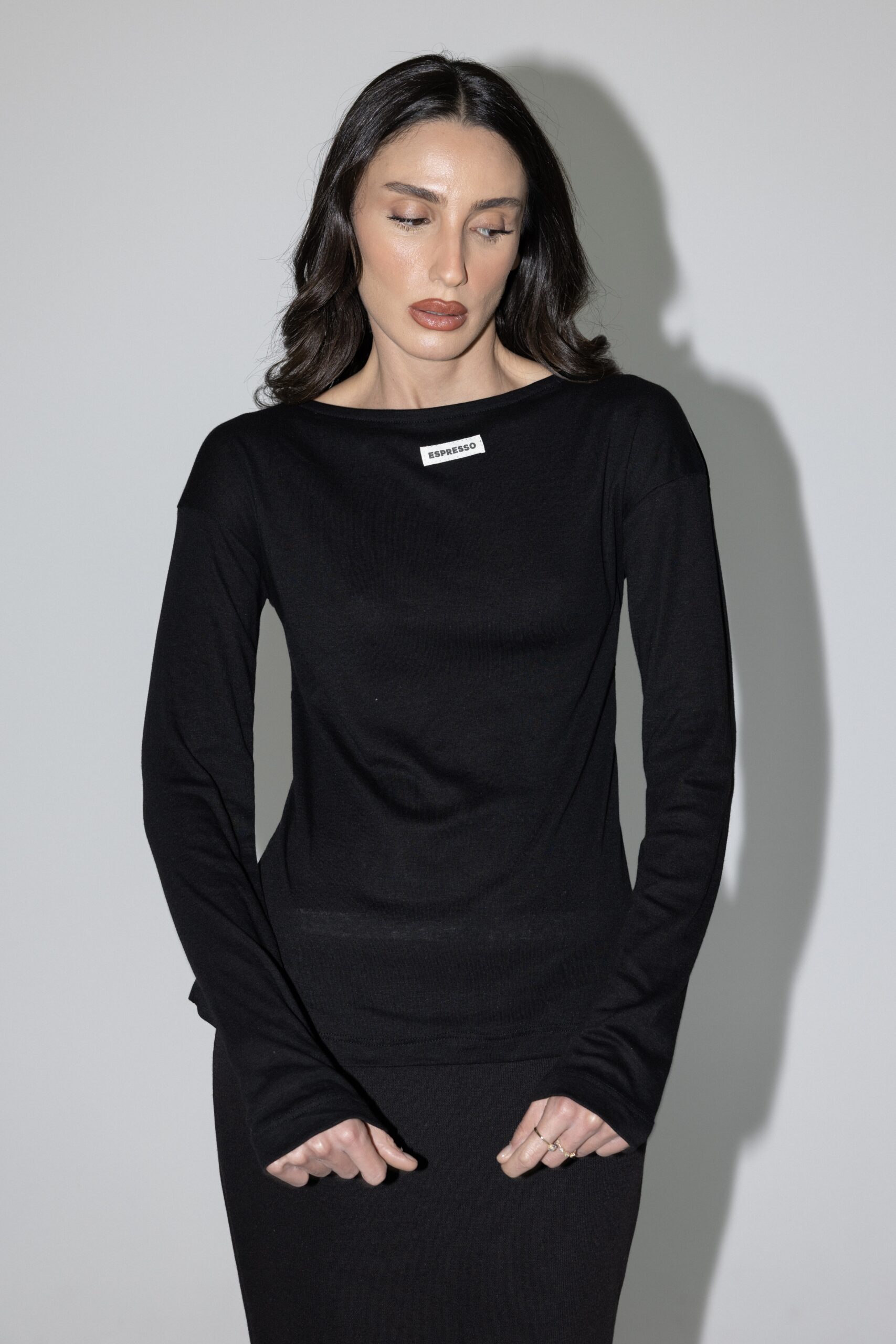טי שרט מבד קליל דק ונעים עם שרוולים ארוכים.