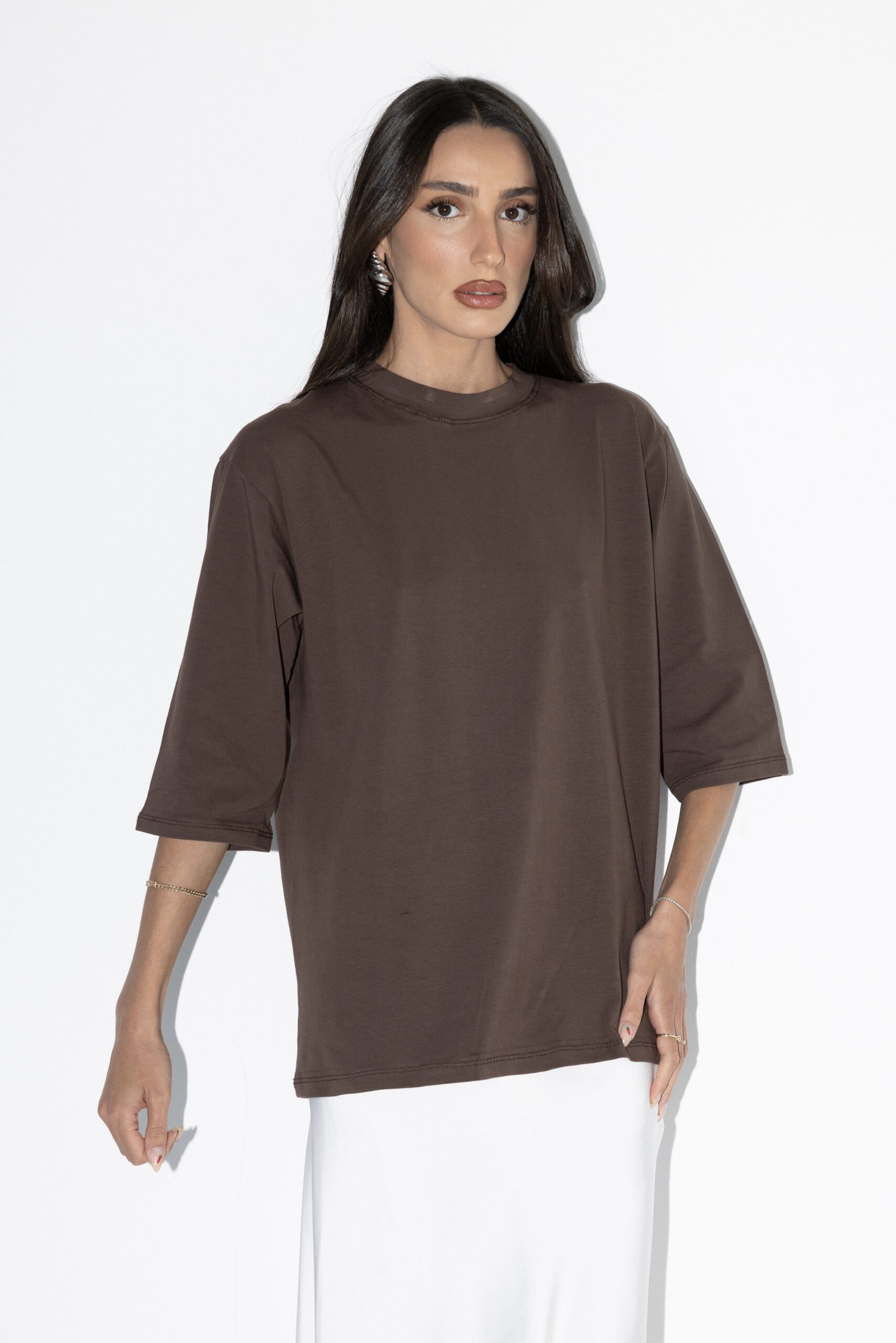 טי שרט בייסיק 3/4 בגזרת אובר סייז עוברת מרפק, טי שרט שהיא חובה בארון שלך מתאימה עם ה כ ל !