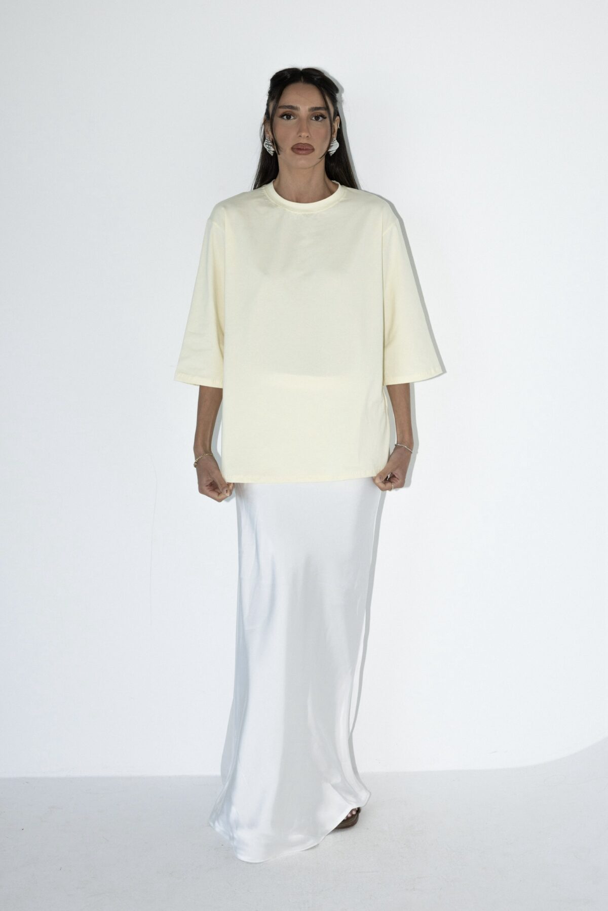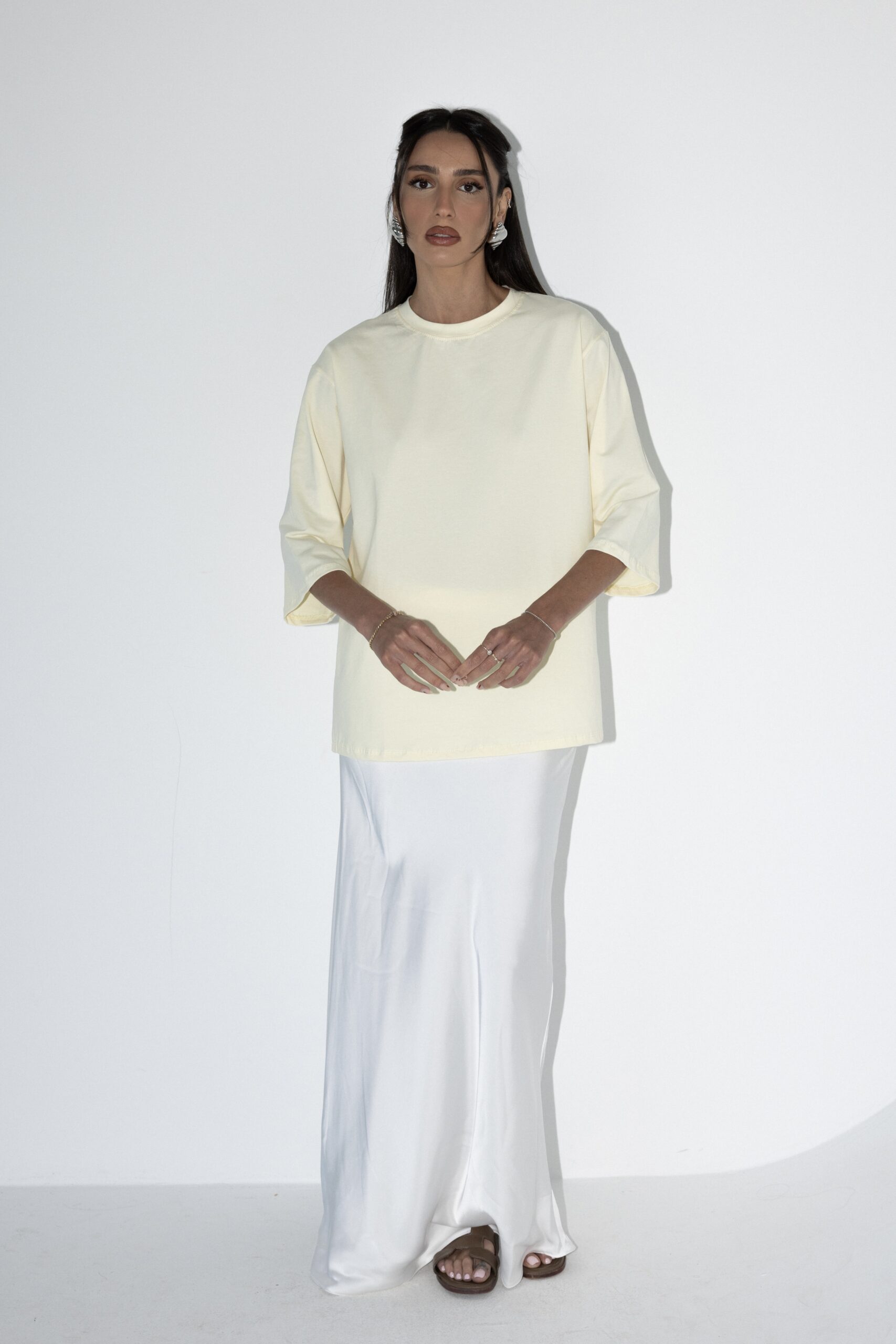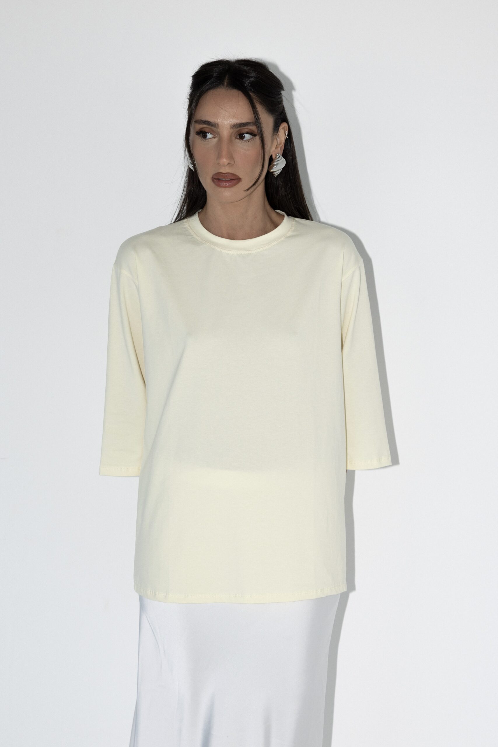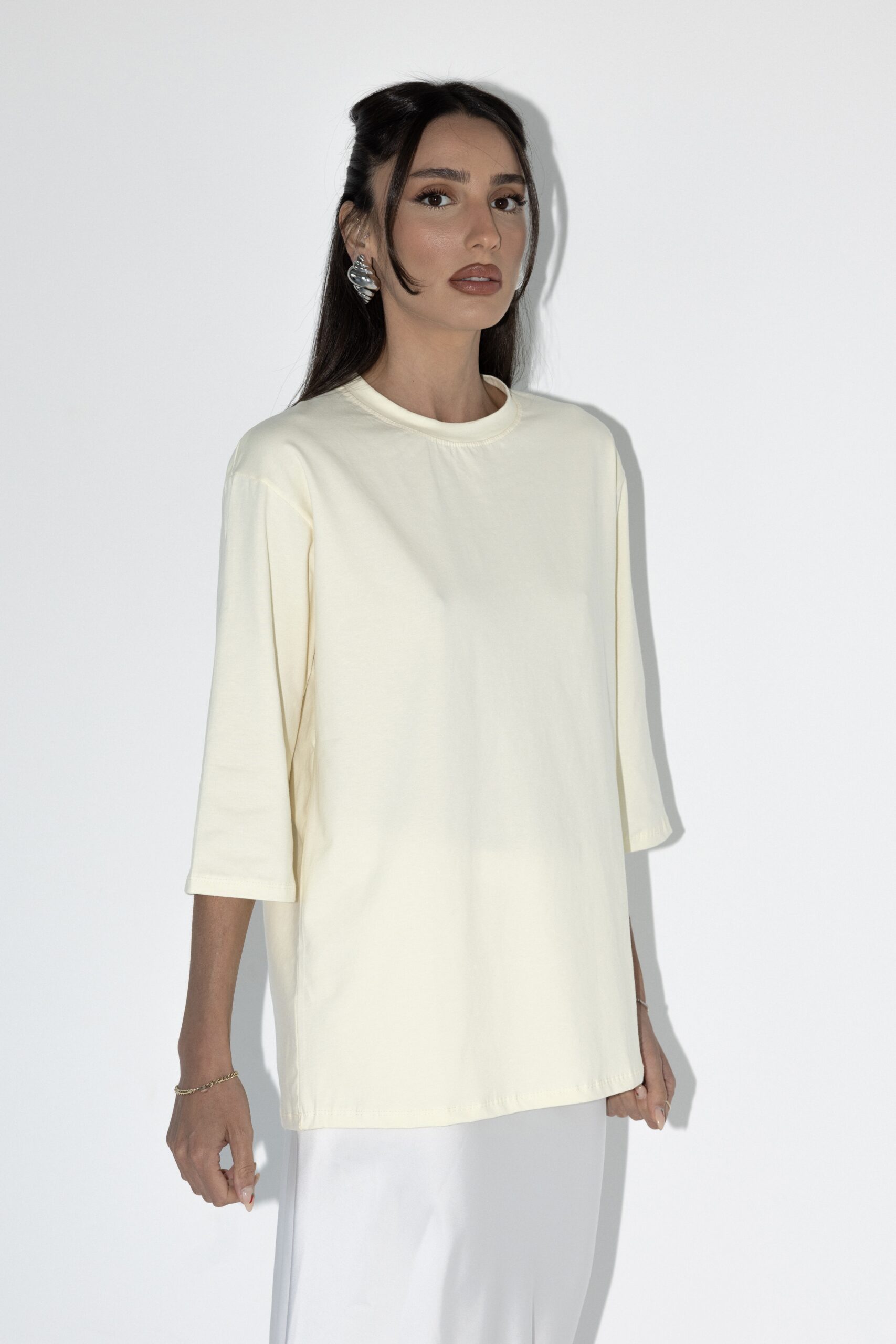 טי שרט בייסיק 3/4 בגזרת אובר סייז עוברת מרפק, טי שרט שהיא חובה בארון שלך מתאימה עם ה כ ל !