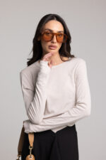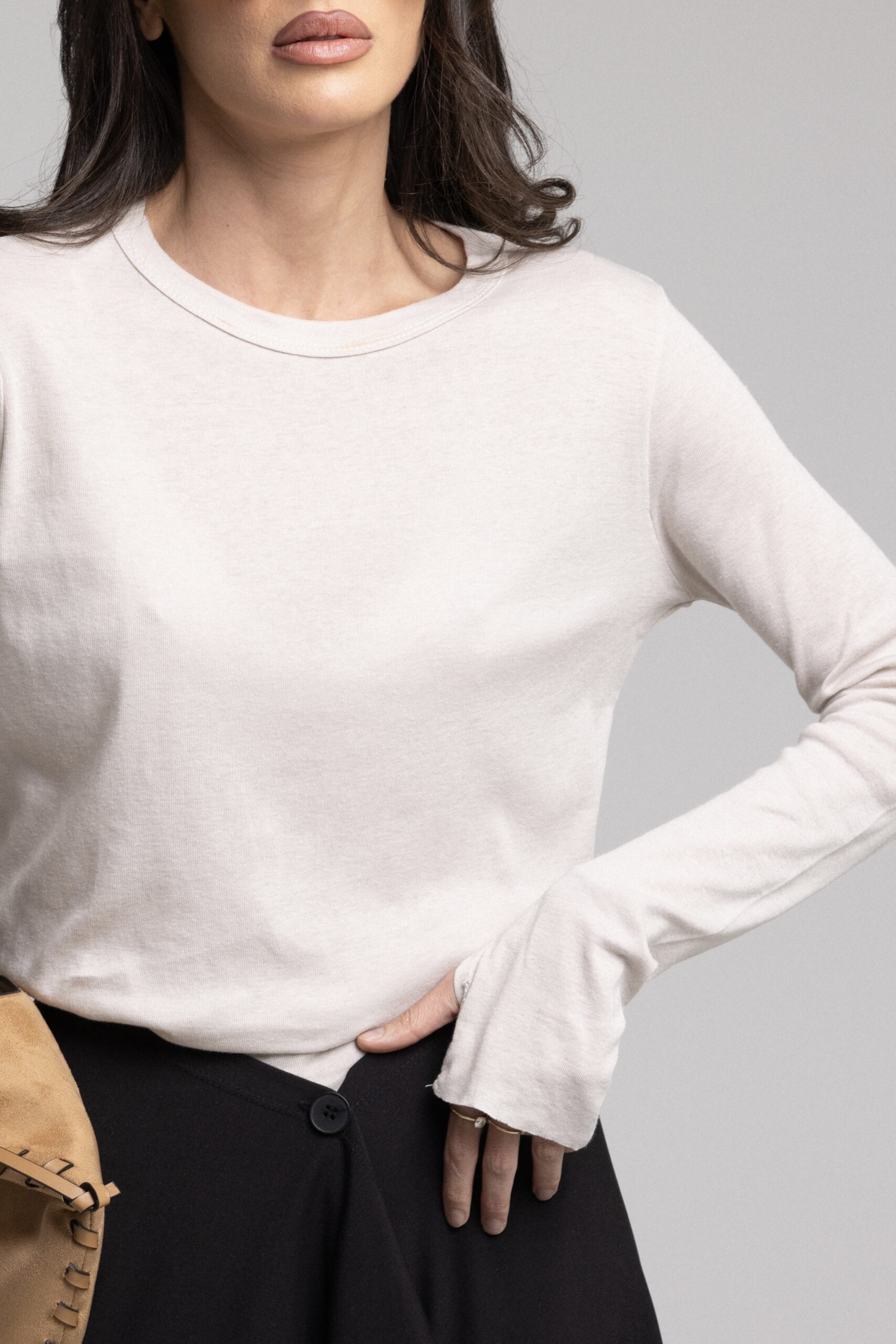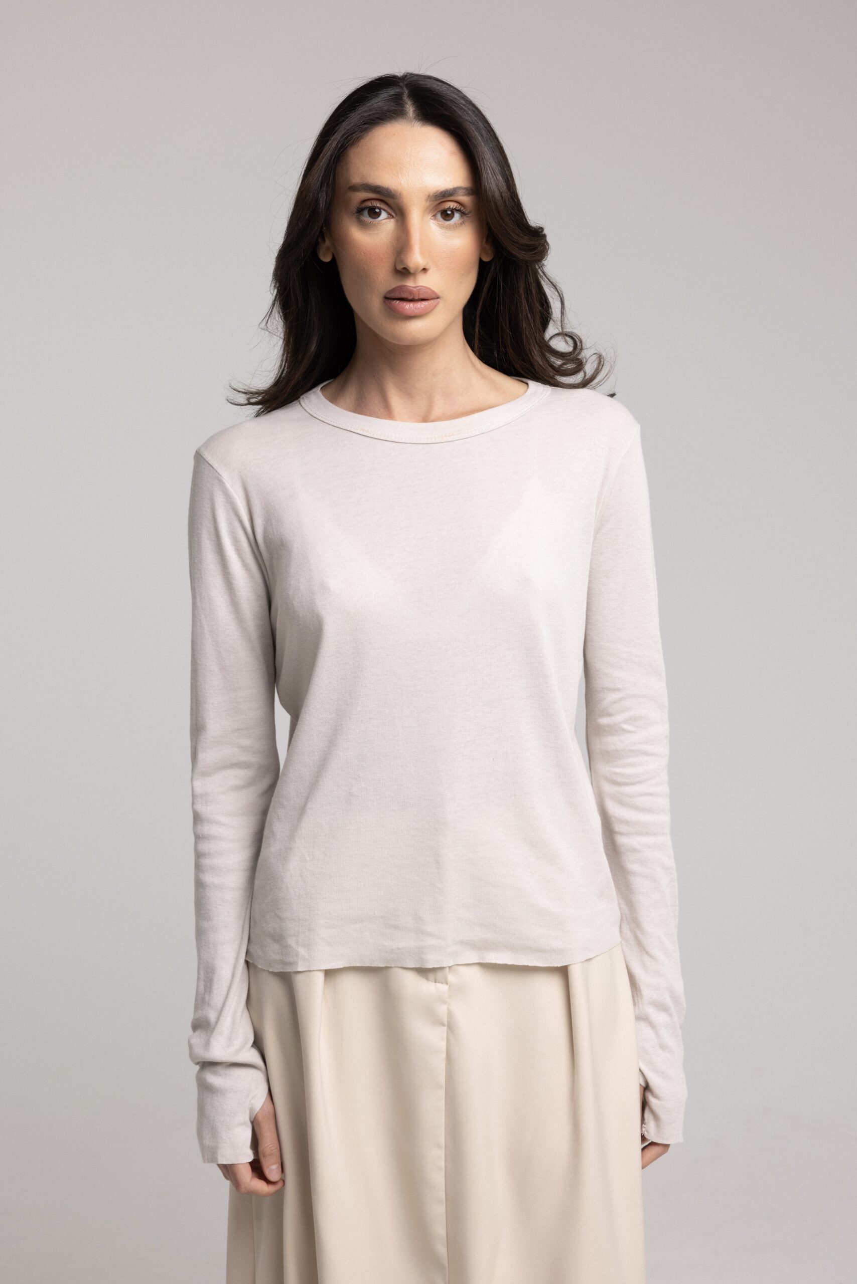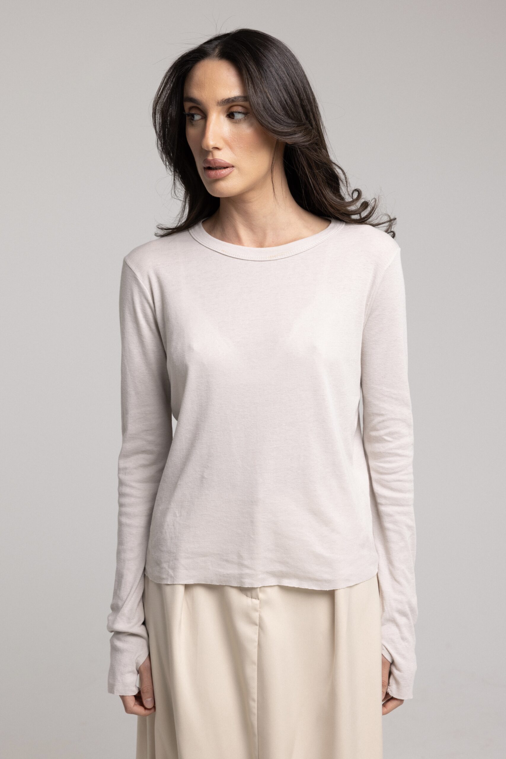 טי שרט ארוכה מבד דק, נעים ומלטף עם כפפה ביד.