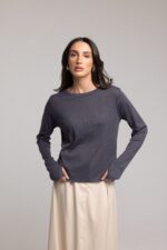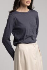 טי שרט ארוכה מבד דק, נעים ומלטף עם כפפה ביד.