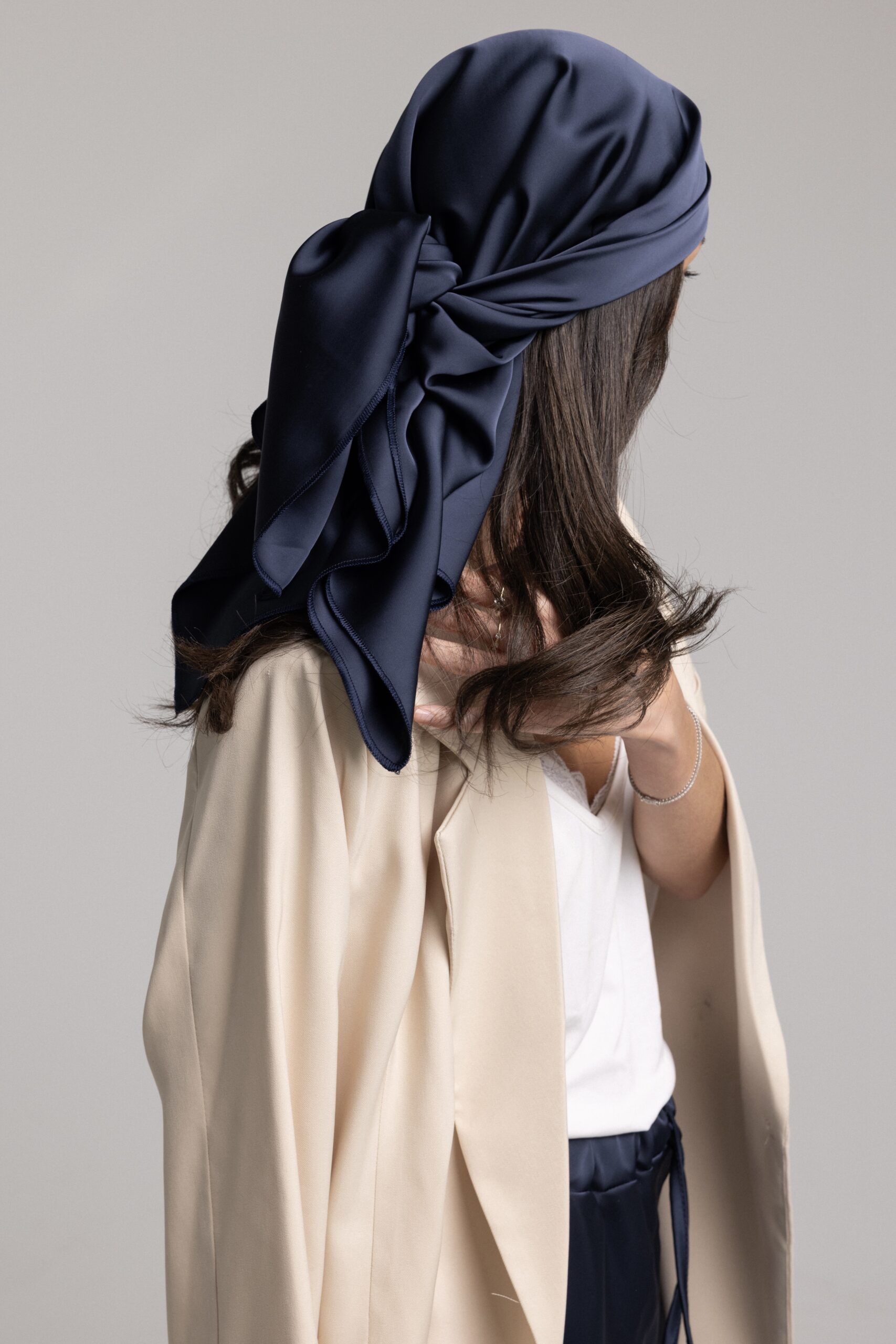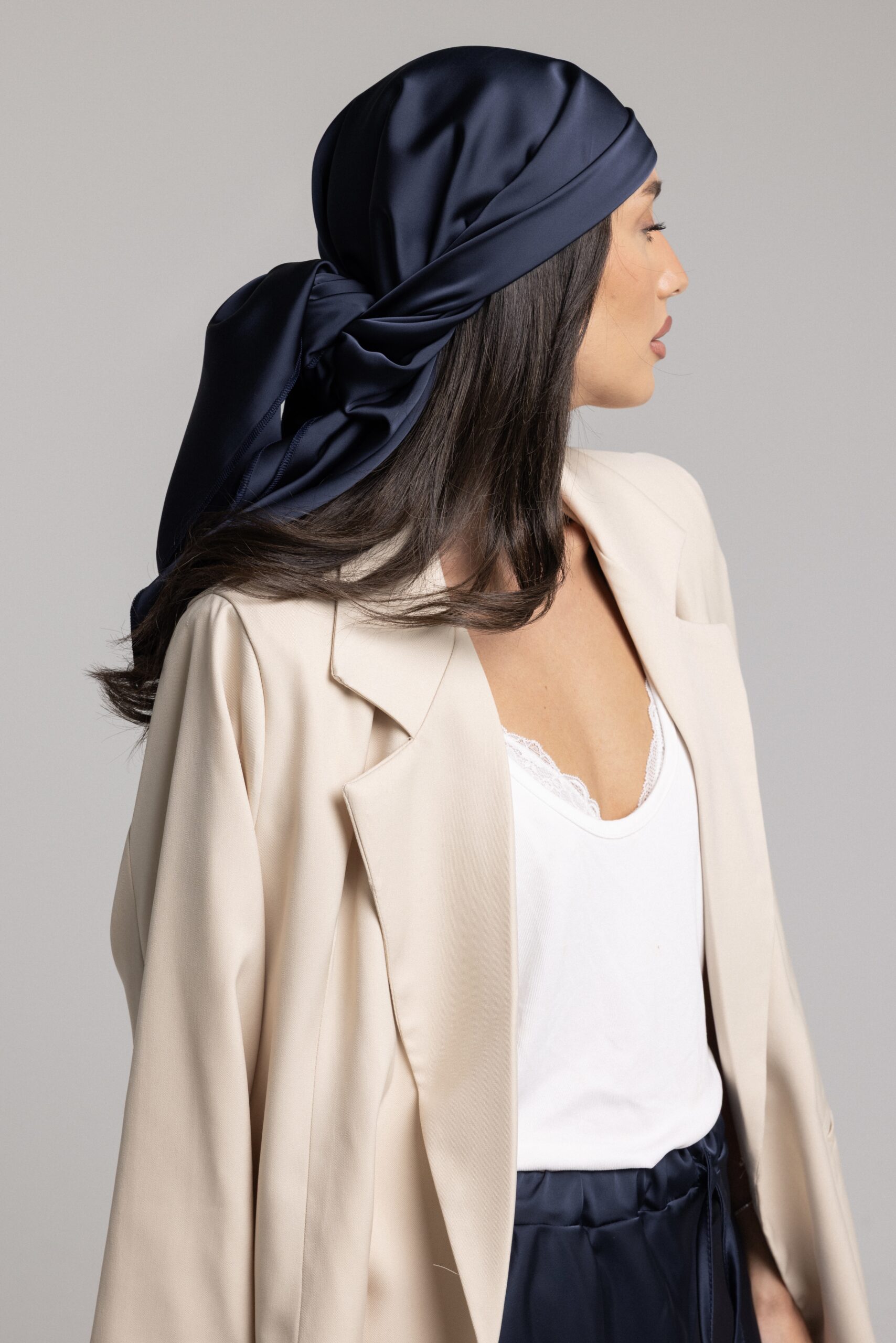 מטפחת כיסוי ראש מבד סאטן בגודל 90X90.