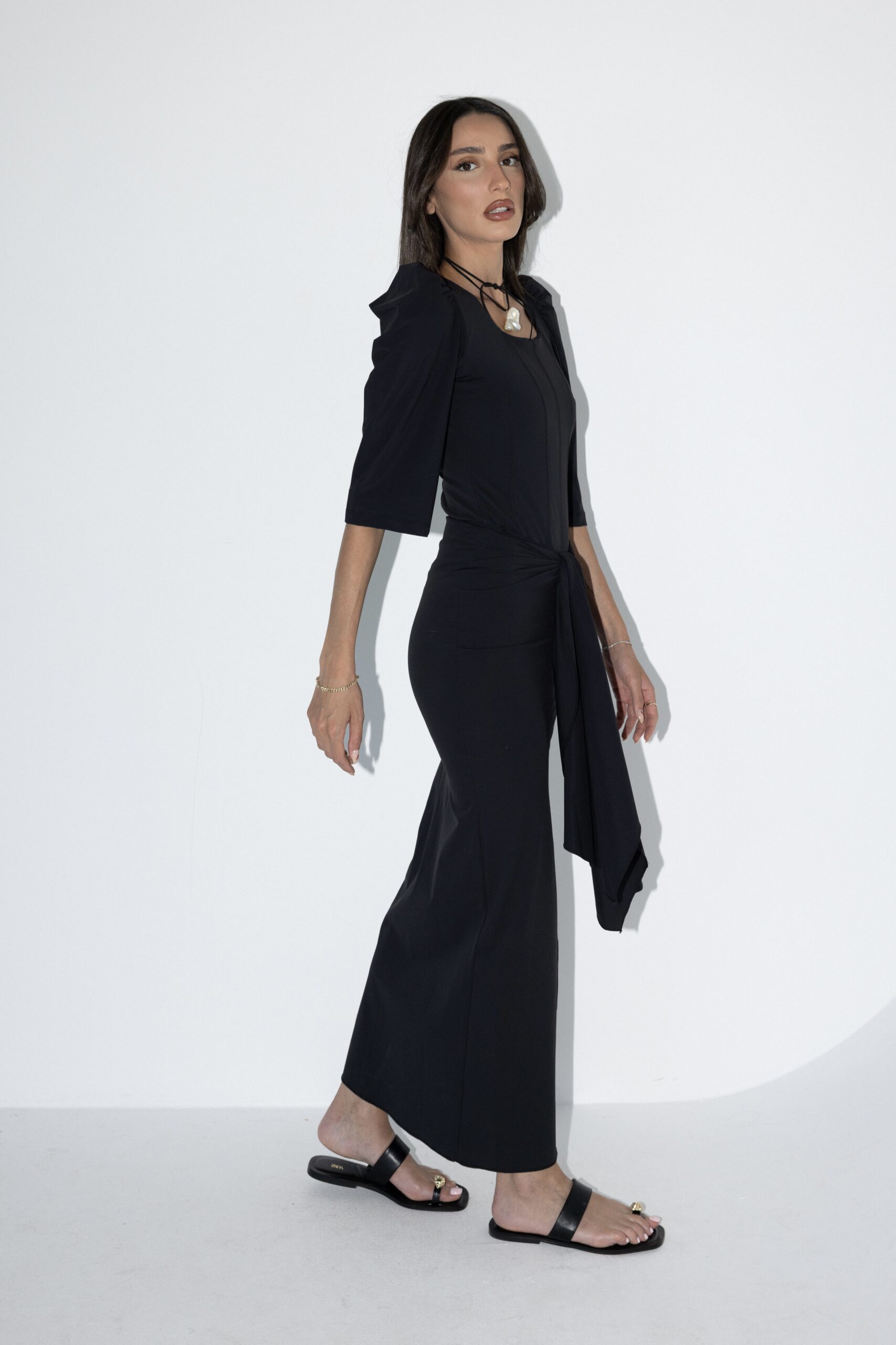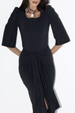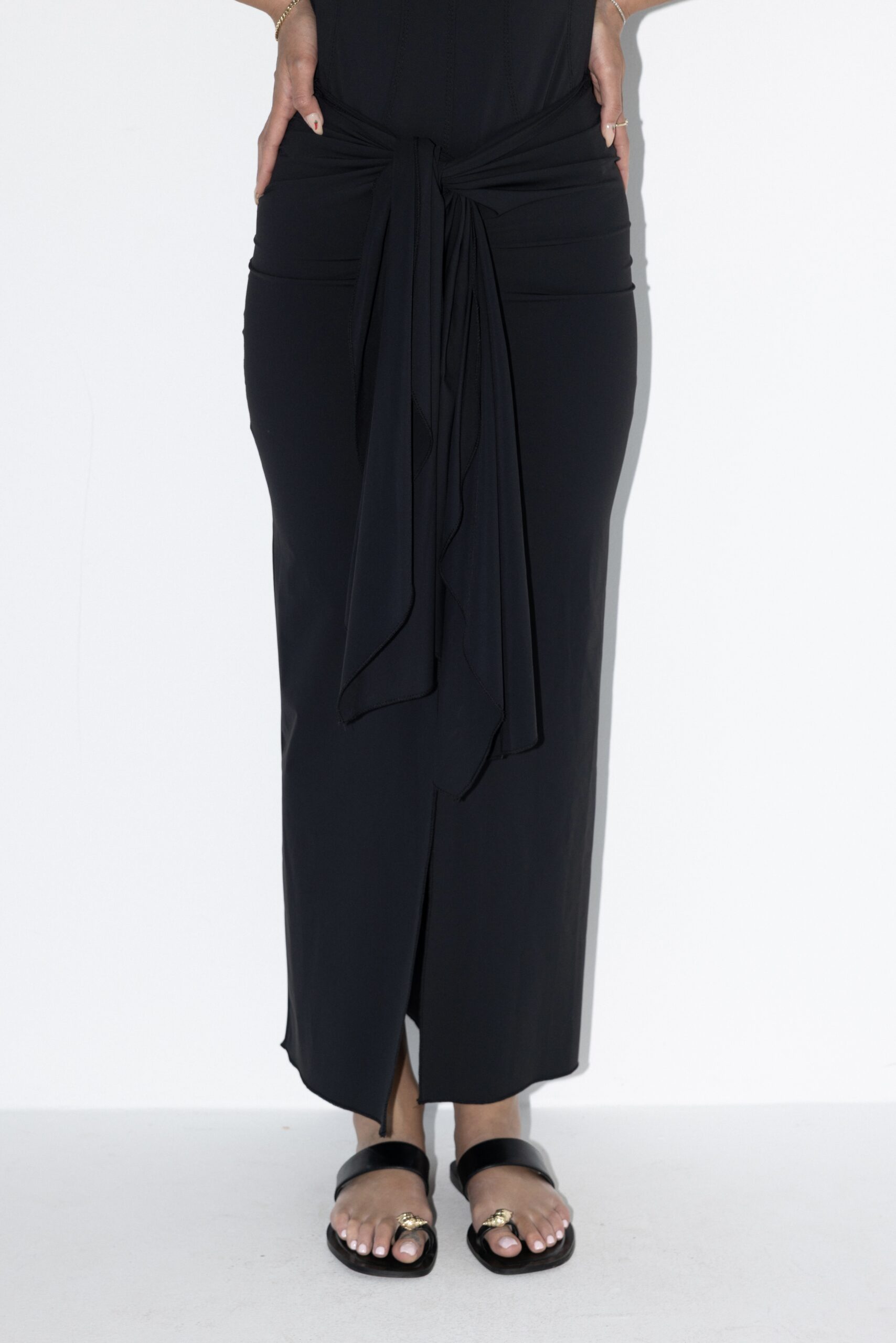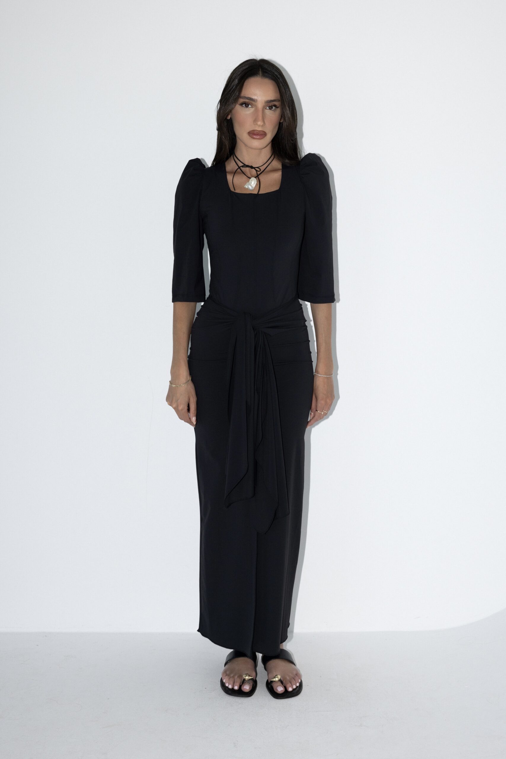 בגד ים שני חלקים בעיצוב צנוע, מחמיא ונוח במיוחד. בגד הגוף מגיע בגזרה ארוכה עם שרוולים 3/4 ומפתח מרובע ומיוצר מבד איכותי ועמיד למים ולשמש. החצאית בקשירה באמצע מאפשרת התאמה אישית, נוחות מקסימלית ומראה אלגנטי בחוף ובבריכה. נועד לשחייה ונראות מושלמת גם מחוץ למים.