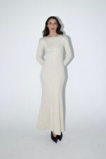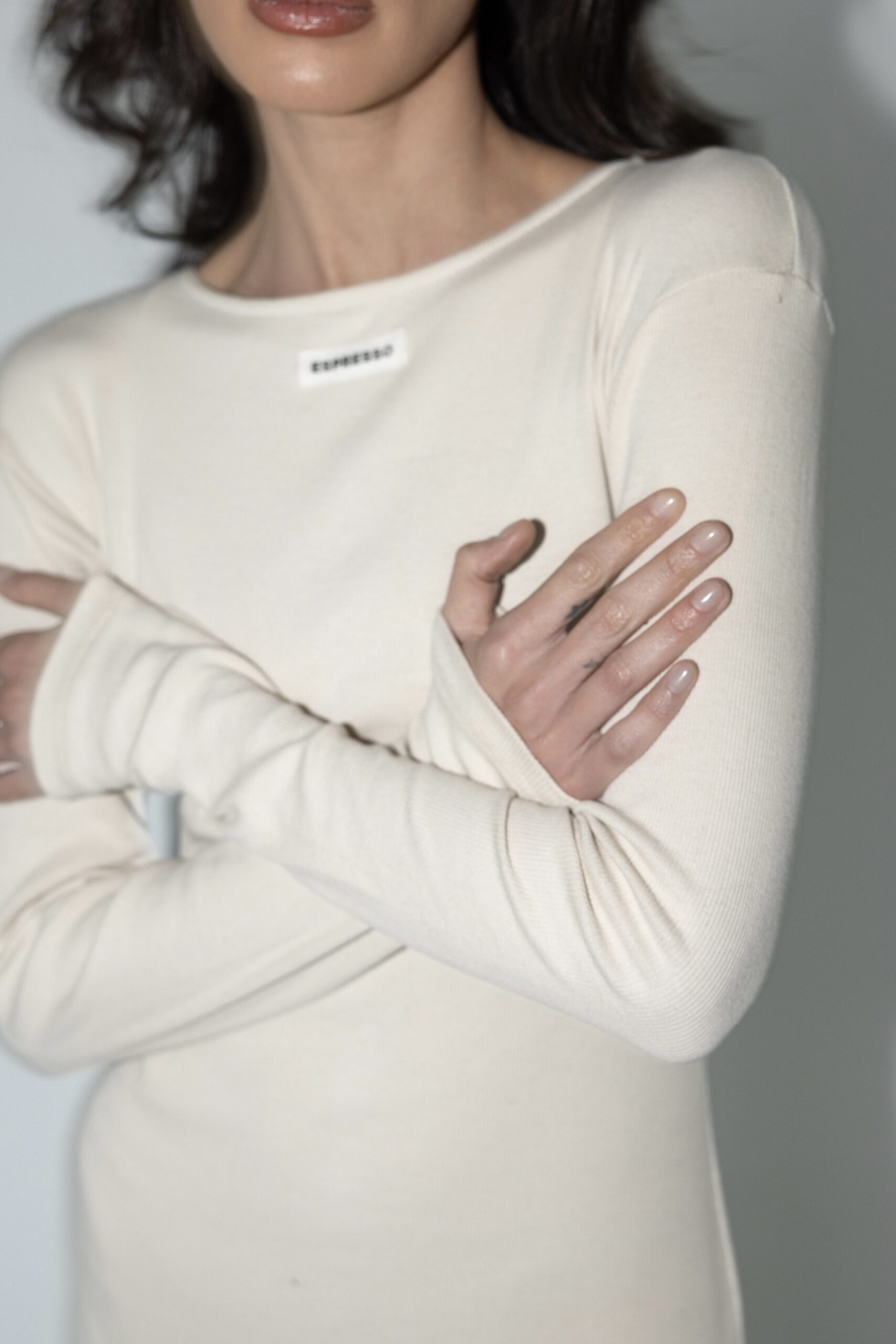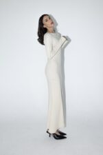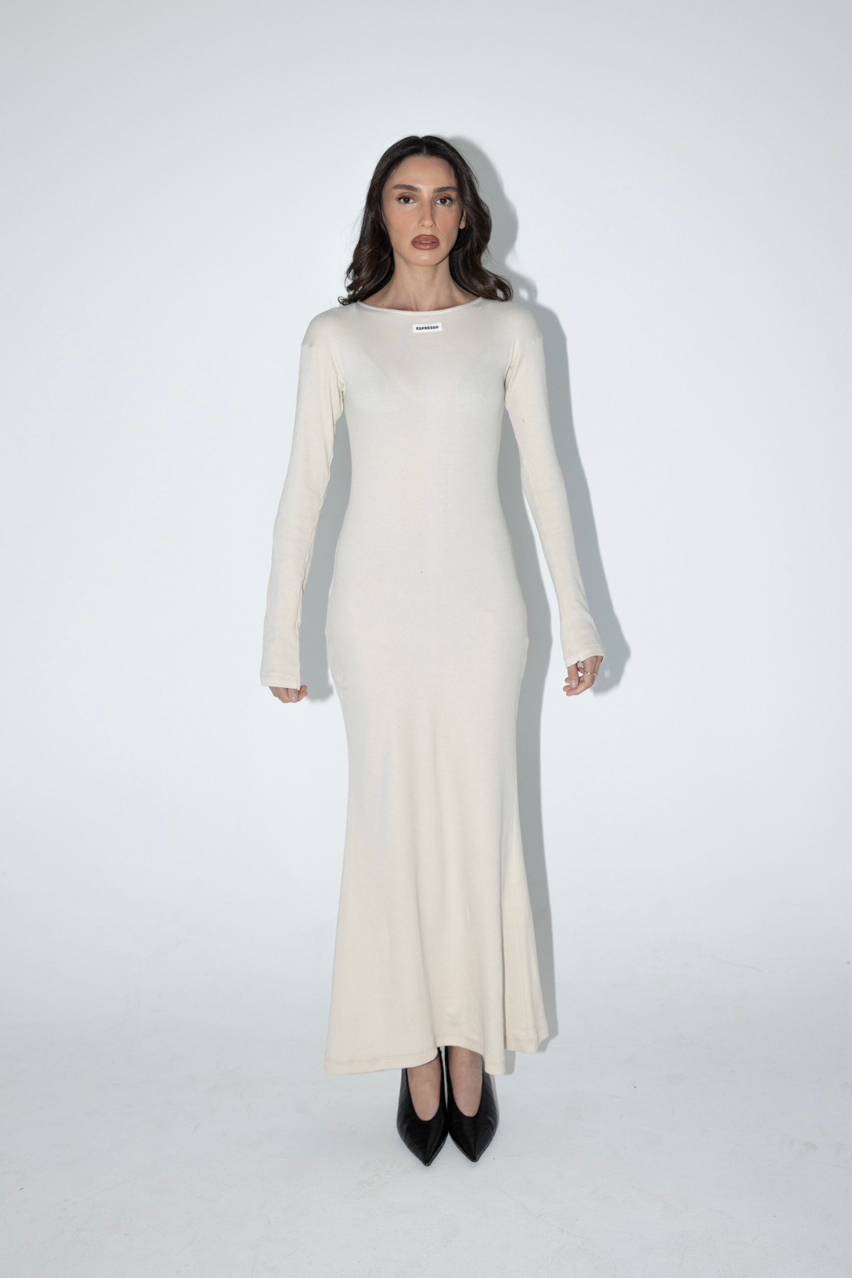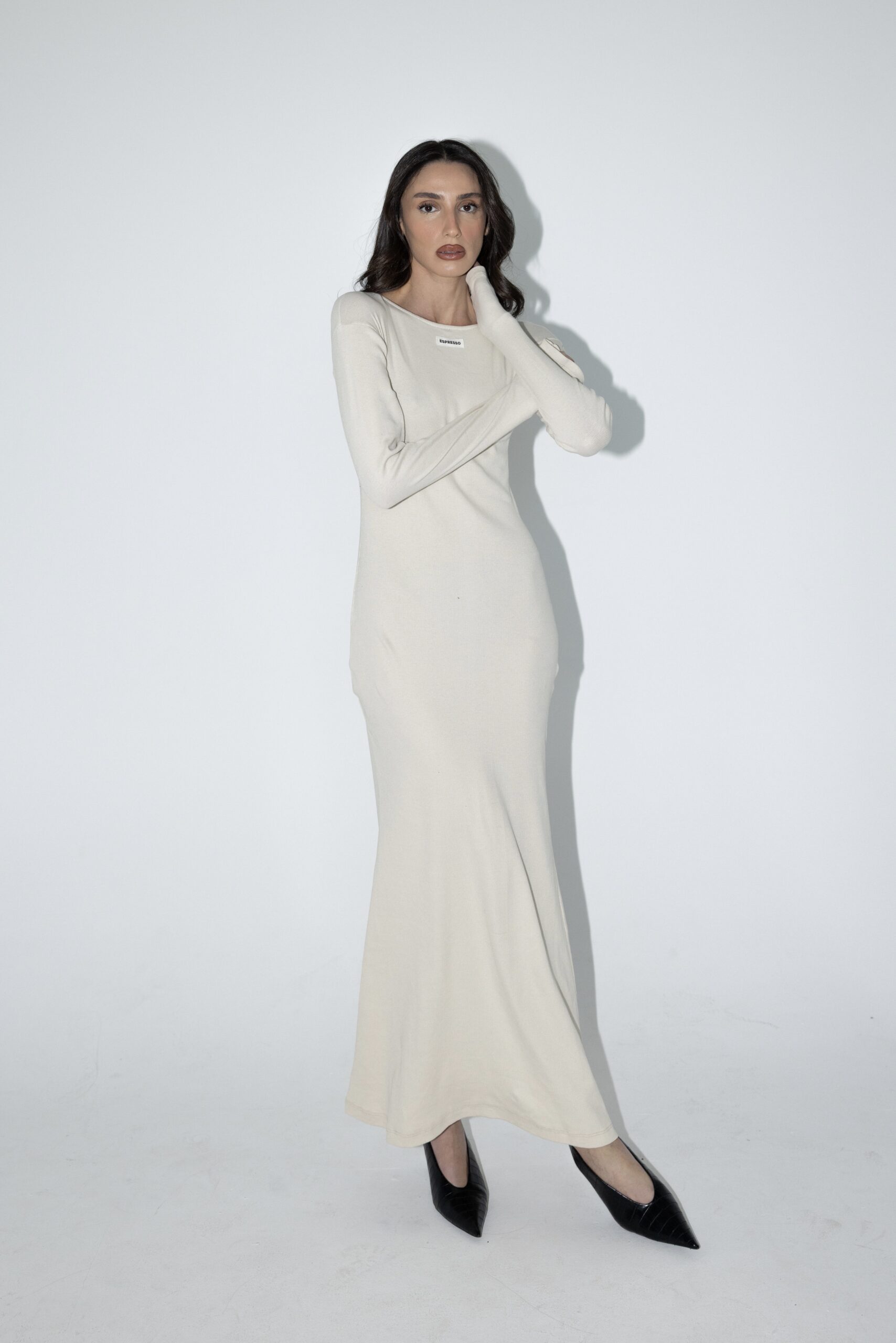 שמלת מקסי בגזרה צמודה מבד ריב עם שרוולים ארוכים מתוך קולקציית ESPRESSO.